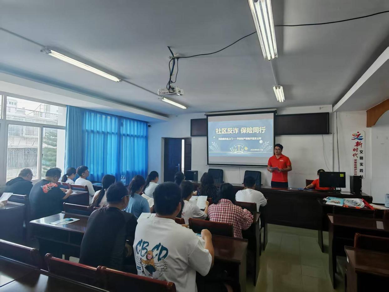 为深入贯彻落实金融消费者权益保护政策,切实提升社区居民金融风险防范意识,9月17日上午,平安产险开远支公司在开远金融监管支局的指导下,联合泸江社区在社区会议室成功举办“社区反诈,保险同行”主题宣传活动