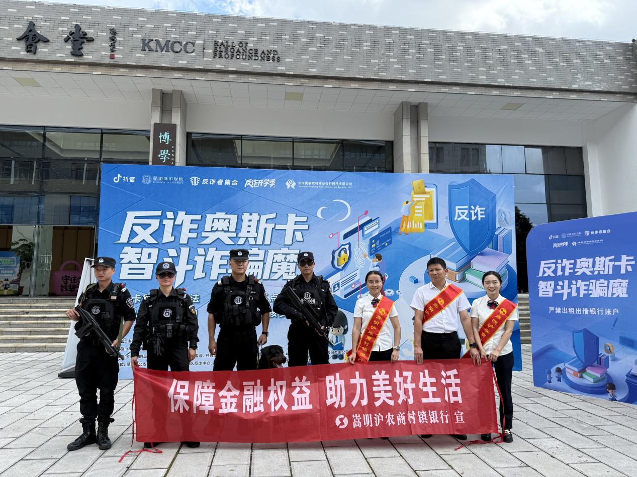 9月16日下午,应嵩明县公安局诚挚邀请,嵩明沪农商村镇银行积极响应与行动,携手多方力量,在昆明城市学院杨林校区为嵩明职教新城的多所高校学生开展了一场主题为“反诈奥斯卡智斗诈骗魔”的反诈宣传活动