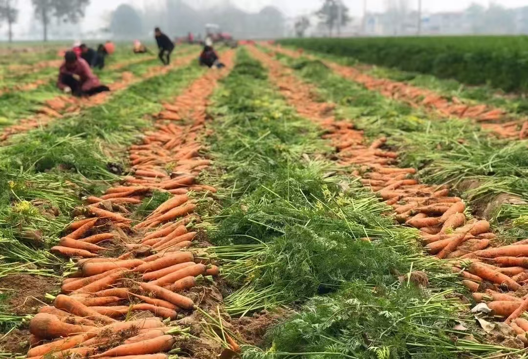 近日,走近河南省开封市通许县孙营乡德播嘉耀绿色农业发展有限公司厂房中,工人们正忙而有序地进行分拣、打包、装箱、入库工作,工人手中新鲜的胡萝卜将送往全国各地成为千家万户餐桌上的美味菜肴。