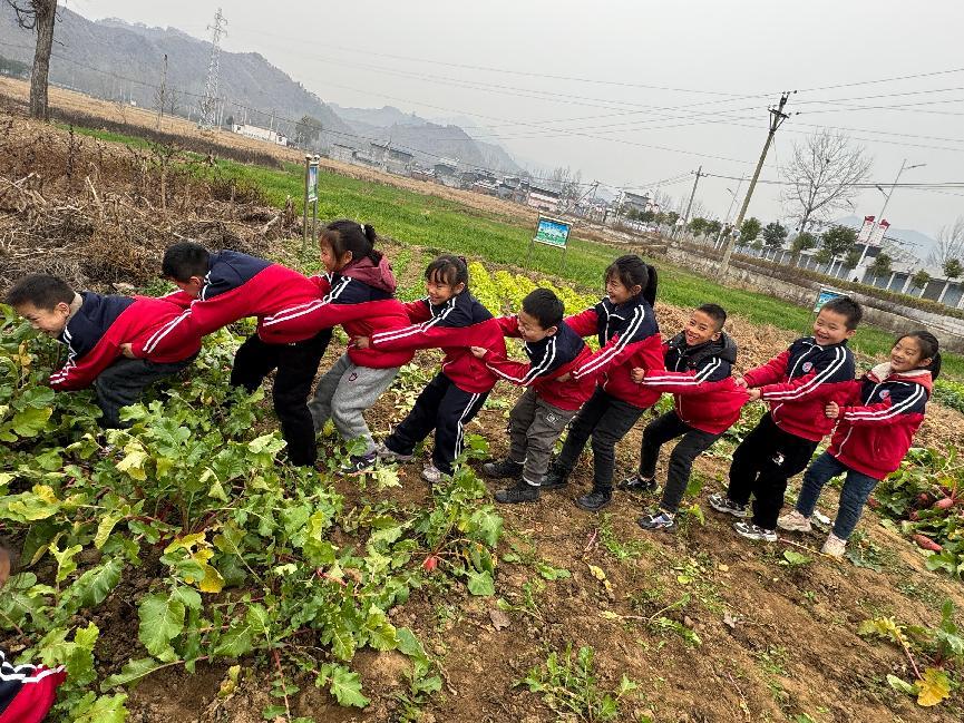 第22个节气——大雪将至,河南省南阳市南召县马市坪西大庄小学劳动教育实践基地百草园里萝卜已经成熟。12月4日,南召县新华书店、学校党支部联合组织师生围绕萝卜展开系列活动:识萝卜、画萝卜、拔萝卜、讲萝卜、吃萝卜。