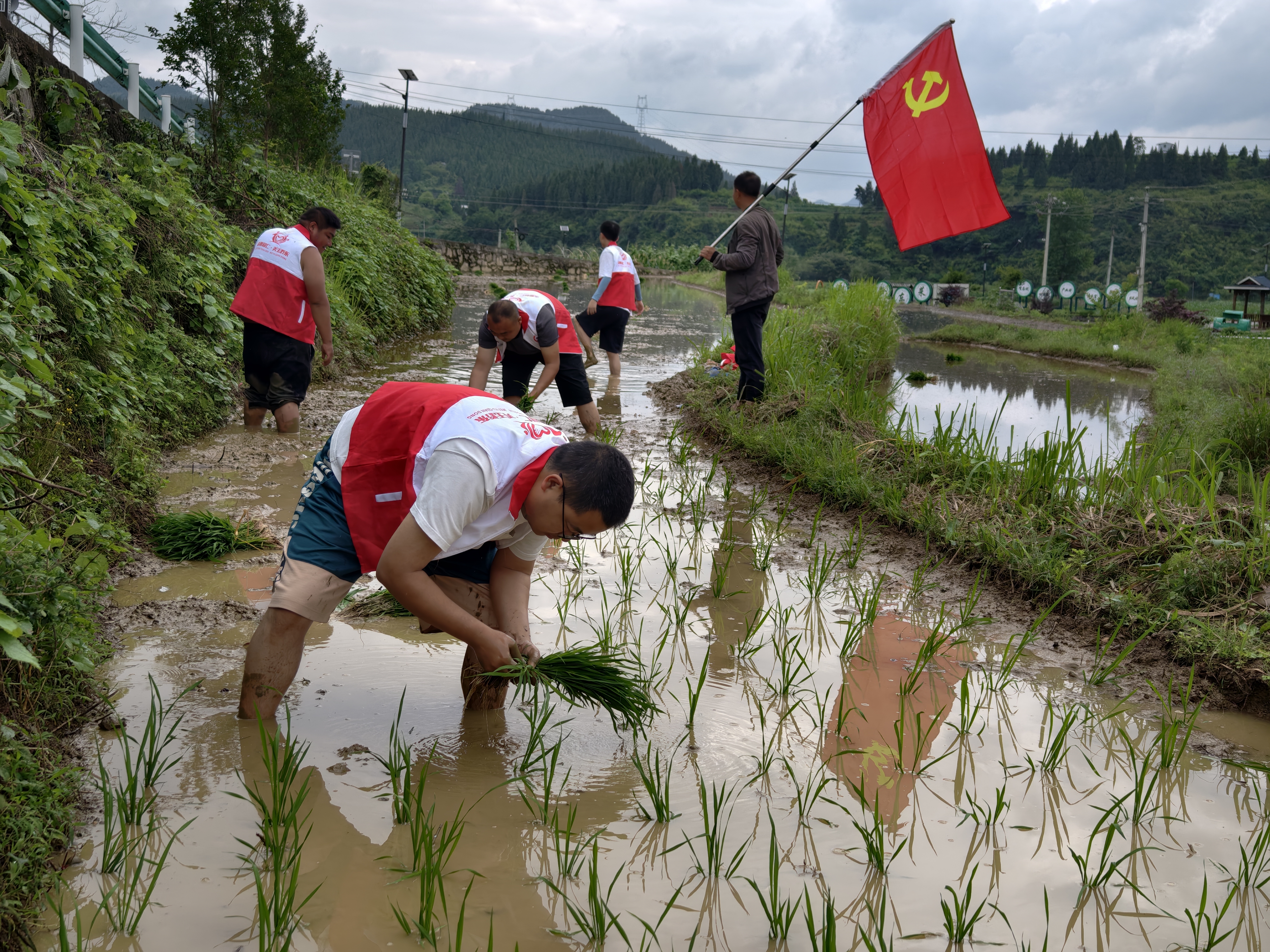 贵州省铜仁市玉屏侗族自治县新店镇以“党建+志愿服务”为引领,结合“我为群众办实事”实践活动,组织党员干部下沉一线与农户共同抢抓农时栽插秧苗,一株株嫩绿的秧苗整齐排列,勾勒出一幅干群齐心助力春耕的生动画面。