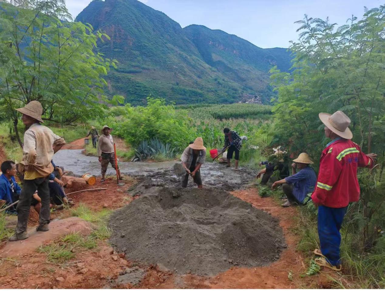清晨的薄雾还未散尽,云南省红河州蒙自市水田乡斜坡村委会湾田村的核桃树下已传来扫帚摩擦地面的沙沙声、电锯修剪树枝的刷刷声和铁锹筑泥的拍拍声……原来是斜坡村委会驻村队、村“两委”委员和村组干部正组织村民们修剪路边杂树枝、清扫路上的落叶与垃圾、修整易滑的路面