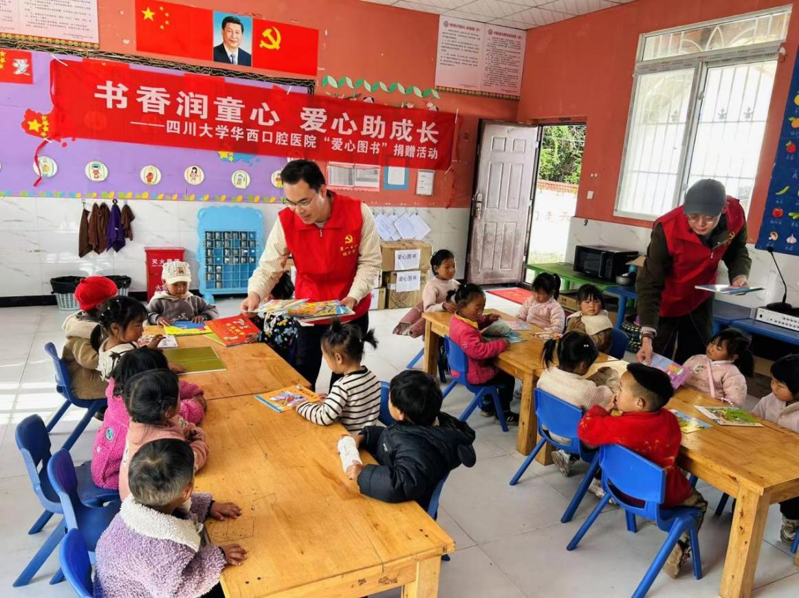 组织捐赠活动的是四川大学华西口腔医院派驻四川省凉山彝族自治州越西县书古镇斯拉村第一书记张金军,他是学生眼中的良师益友,更是一位在乡村全面振兴路上默默奉献的高校思政工作者,他用扎实的专业知识和对教育帮扶的执着追求诠释着华西口腔人的责任与担当