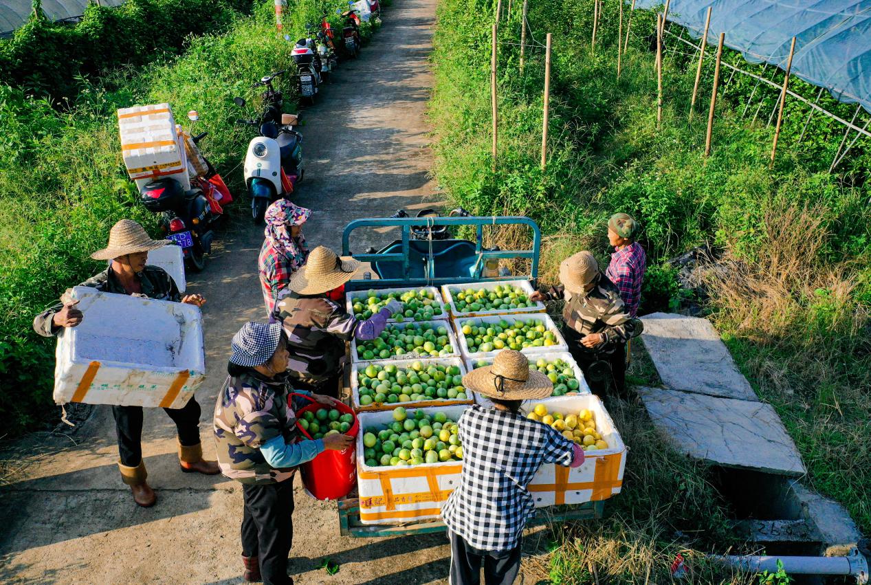 2025年8月16日,在广西壮族自治区梧州市岑溪市糯垌镇平坡村生态农业百香果种植基地,农民把刚采摘的百香果装车运往归集点,待供粤港澳大湾区市场