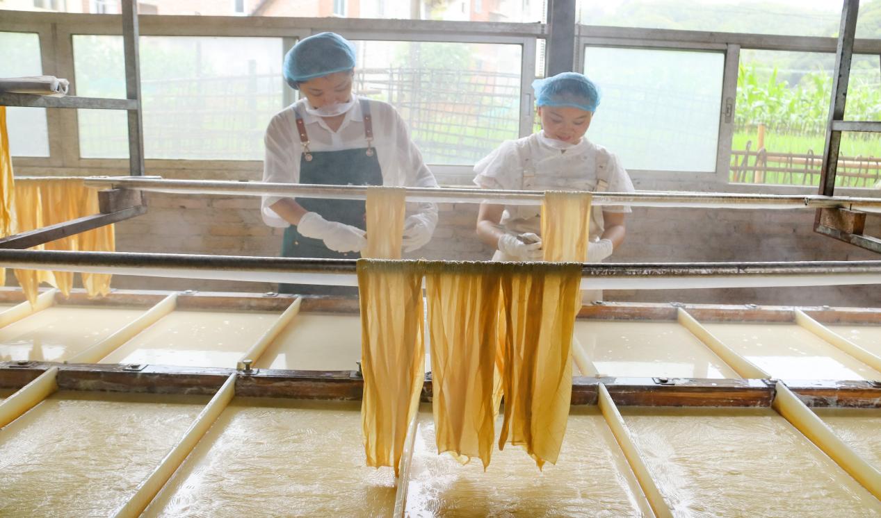 近年来,苍梧县依托本地资源优势,因地制宜,将腐竹产业传统工艺与现代技术集合起来,以党建为引领,通过乡村小作坊、扶贫车间、村集体经济、腐竹产业+的方式推进腐竹产业上下游产业链发展,增加就业机会,为群众增收,全面助力乡村振兴