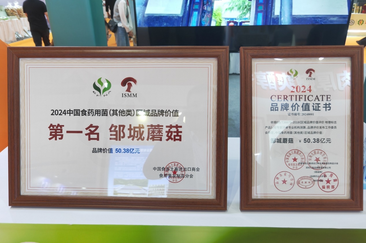 近日,在2025食用菌全产业链(厦门)创新博览会上,“邹城蘑菇”登榜“2024中国食药用菌区域品牌价值榜单”,以50.38亿元品牌价值成功上榜,荣获中国食药用菌(其他类)区域品牌价值第一名,品牌价值再创新高。