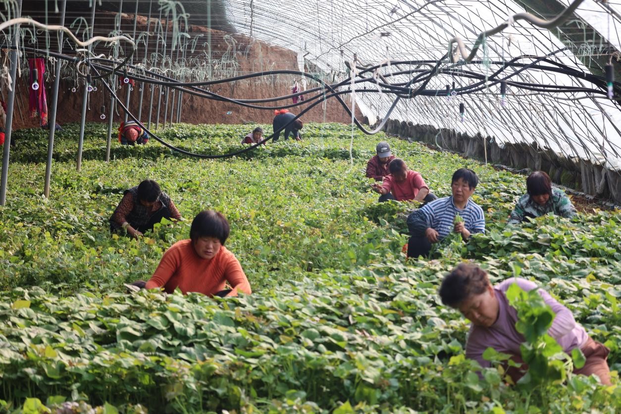 眼下正是红薯薯苗采秧的好时机,在山东省曲阜市息陬镇北夏宋村高标准日光大棚中,一垄垄嫩绿的蜜薯苗长势良好,绿意盎然,呈现一派欣欣向荣的景象。