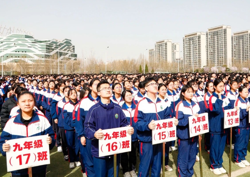 2025年2月27日下午,安徽省怀远县双桥集镇中心学校校本部九年级在大操场隆重举行百日誓师大会。校长程亮、副校长赵坤、教务主任陈玉侠出席了会议,初三全体师生及家长参加了大会。