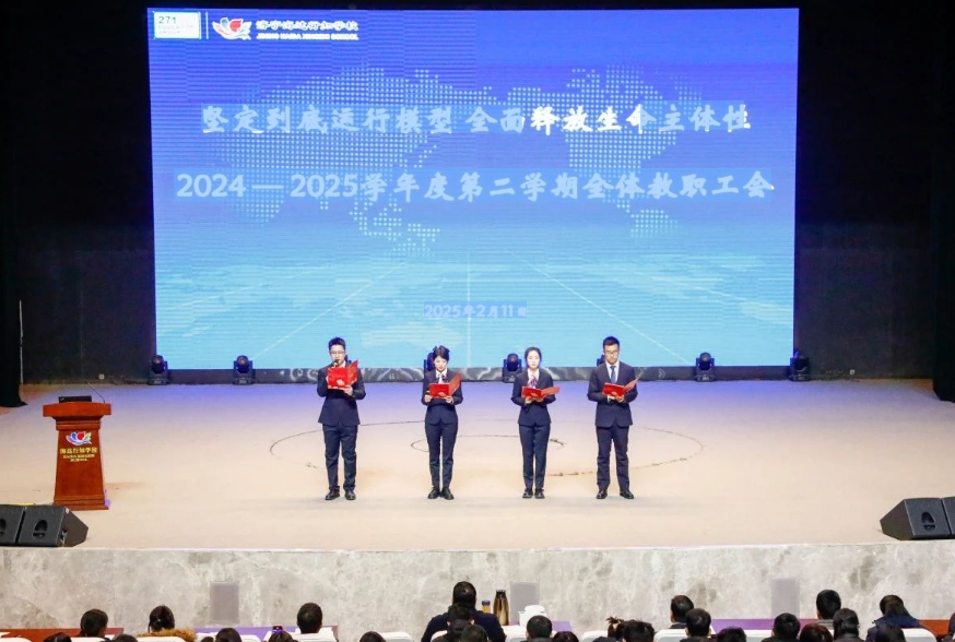 2月11日,山东省济宁海达行知学校全体教职工齐聚演艺报告厅,共同谋划新学期发展思路,以“干字当头实字为要”的工作基调开启新学期的新征程。
