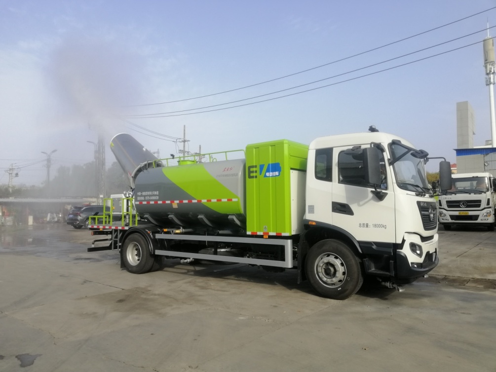 上图“东方红”18吨纯电动抑尘车现场作业中