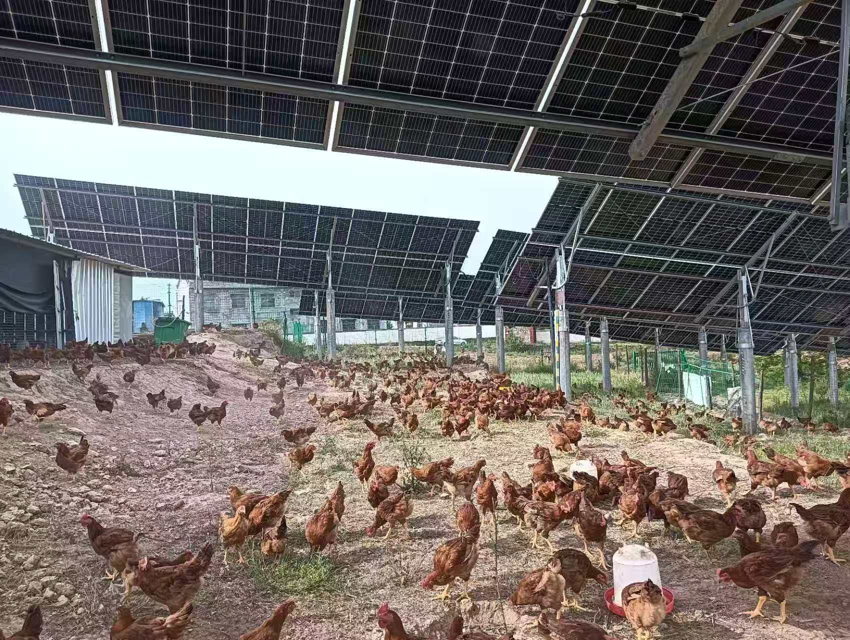 近日,走进陕西陇县温水镇苏家塬村,群山间一片片光伏板如银色波浪般铺展。而在这片“能量板”下,千余只土鸡正“溜溜达达”啄食嬉戏。“这1000只土鸡7月份就能出栏,县里计价农家乐早早就预定了。”苏家塬村党支部书记赵德林高兴地说。