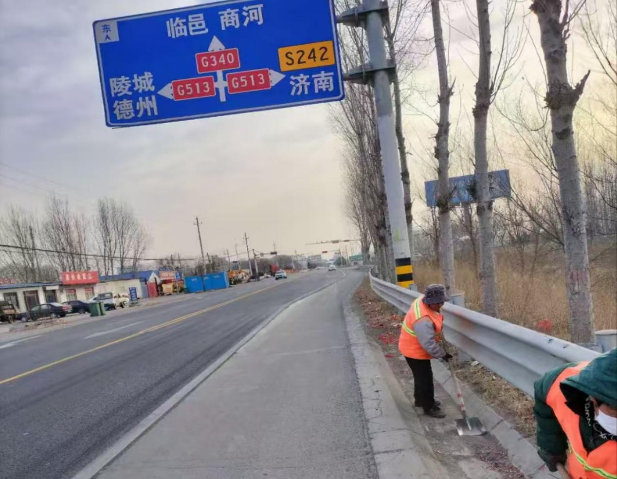 山东省德州市公路事业发展中心临邑分中心春节前组织专业人员对路面、桥梁的交安设施等进行全面排查,及时修复损坏设施,消除安全隐患。