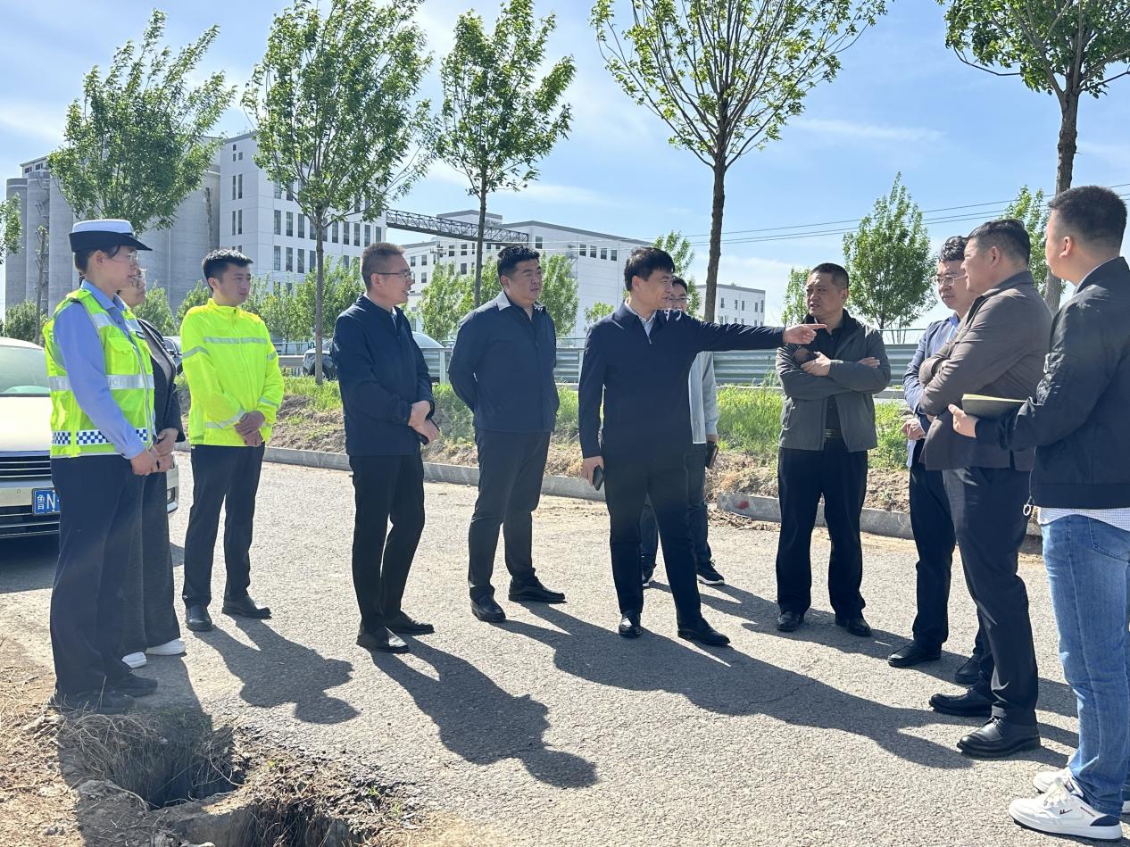 近日,山东省德州市陵城区委常委、政法委书记李洪伟带领陵城公路分中心“公路帮办”服务小组与行政审批、交警部门联合进入国道513线与省道323线交叉口东北角36K+400m石墨烯产业园,实地会商、研判增设平交道口事宜。