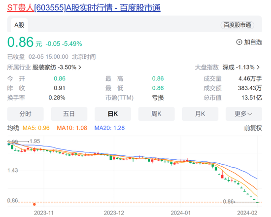 截至2月5日收盘,ST贵人股价报收于0.86元/股,已连续三日低于1元/股。公司股票面临着“面值退市”危机。高瑞抛出的增持计划也引来上交所的问询。