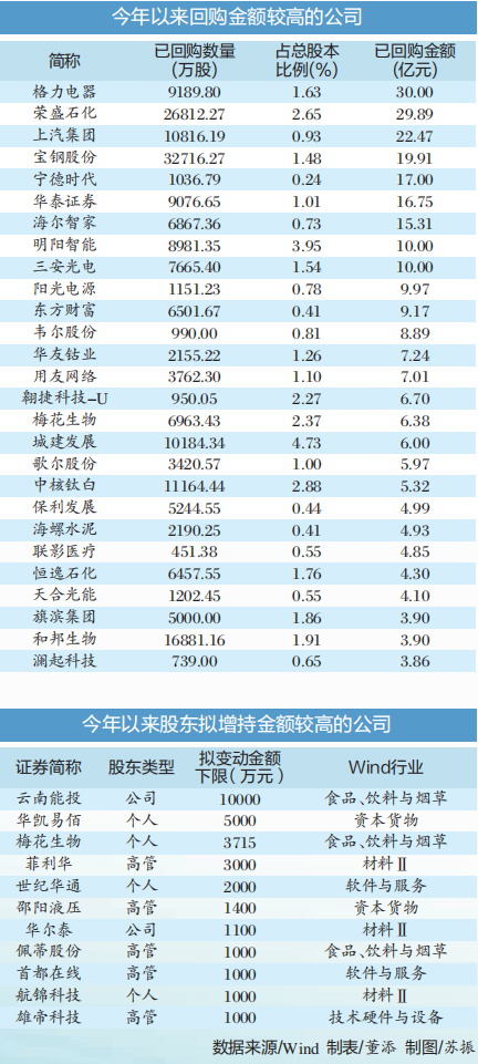 前海开源基金首席经济学家杨德龙对中国证券报记者表示,上市公司通过回购、重要股东增持等手段向市场传递信心,有利于稳定预期。