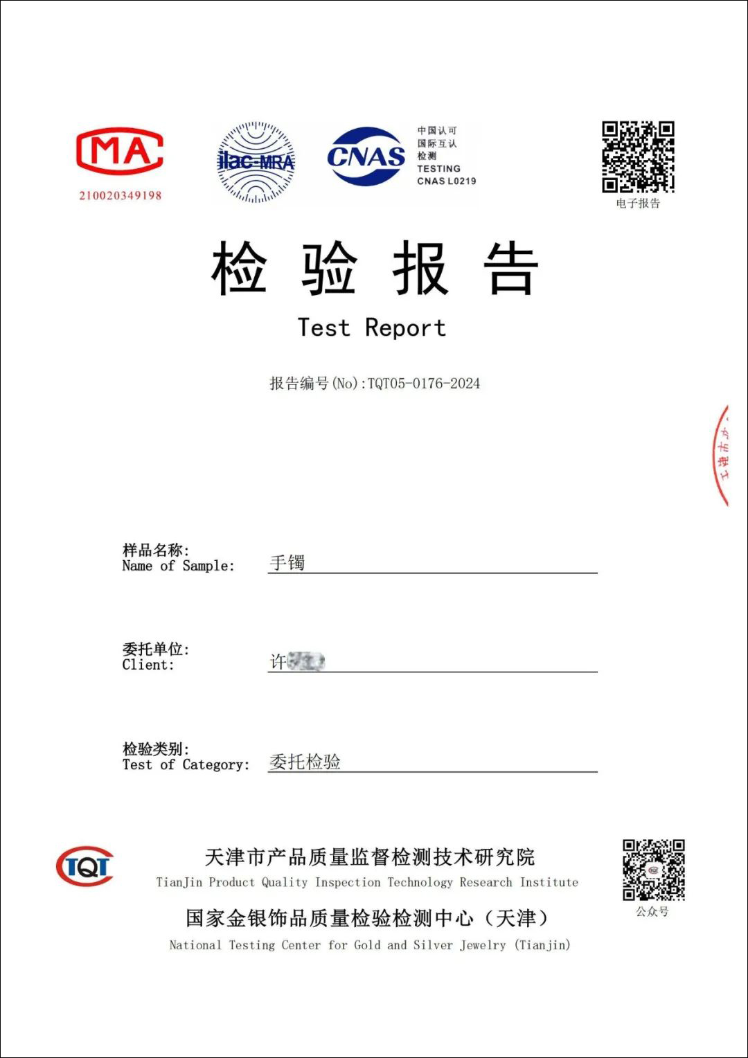 回应称,2月20日,在当地市场监督所协调下,双方同意将该手镯委托第三方专业检测机构——天津市产品质量监督检测技术研究院国家金银饰品质量检验检测中心(天津)对该产品进行破坏性检测。
