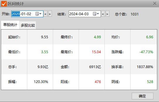 Choice数据显示,2020年1月2日至2024年4月3日,世纪华通股价累计下跌47.73%。