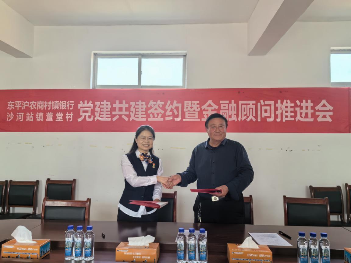 在春日的暖阳下,东平沪农商村镇银行党支部与董堂村网格支部再度携手,共同签订了党建共建协议。这不仅是两个组织之间的深度合作,是将金融服务延伸到乡村每一个角落的美好见证,更是一项共同助力乡村振兴的有力举措。
