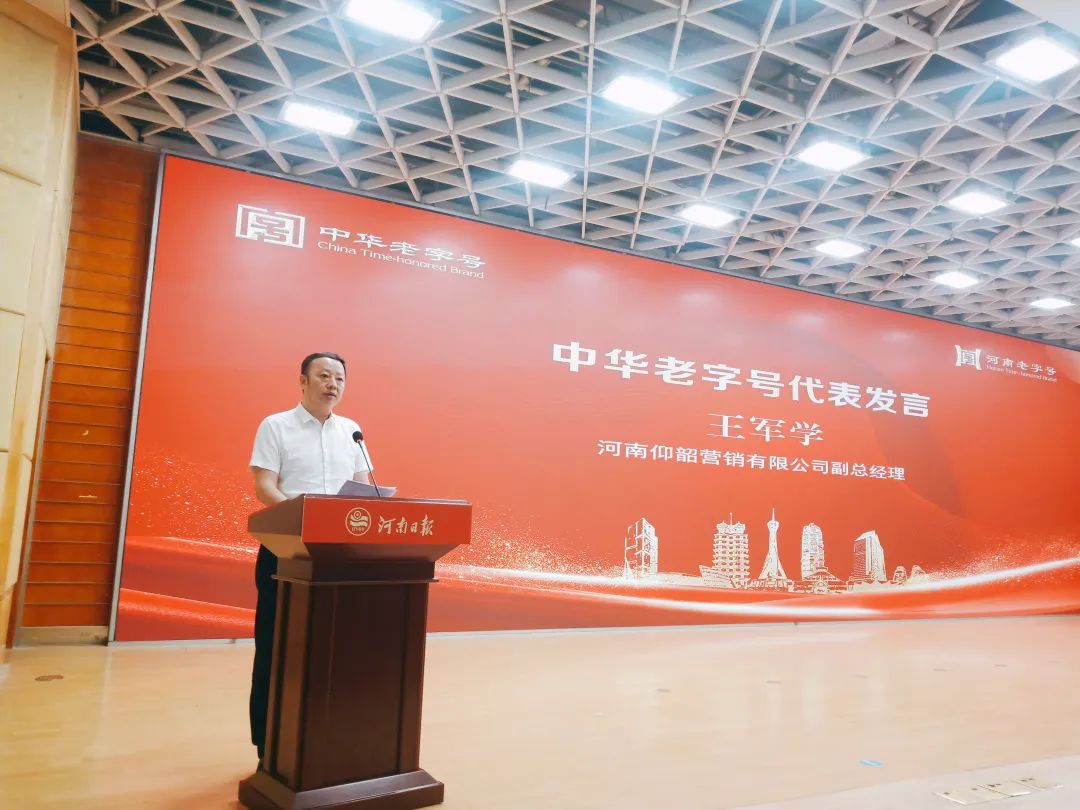 6月26日,河南省第三批中华老字号授牌仪式暨2024河南老字号守正创新发展专题培训会召开。活动由河南省商务厅主办,河南省老字号协会、河南日报传媒有限公司承办,现场为河南省第三批中华老字号企业授牌,并围绕知识产权保护、品牌集聚新模式、数字化创新营销等内容,开展老字号守正创新发展专题培训。仰韶酒业作为中华老字号企业代表参会并接牌,仰韶营销公司副总经理王军学出席活动,并作为中华老字号代表发言。