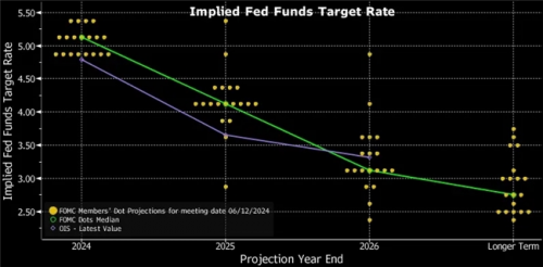 在6月的议息会议上,美联储决定将联邦基金利率目标区间维持在5.25%至5.5%的水平不变,这已经是其连续第七次“按兵不动”。此外,美联储最新发布的点阵图显示,今年可能只有一次降息,相比之前预期的3次降息有显著减少。