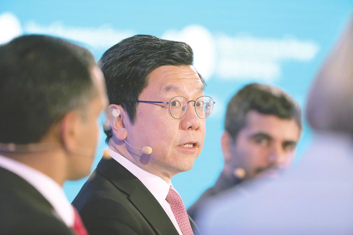 8月7日,有媒体报道,李开复创办的AI大模型独角兽公司零一万物已经完成新一轮融资,金额达数亿美元。图为零一万物创始人兼CEO李开复(左二)。 视觉中国图