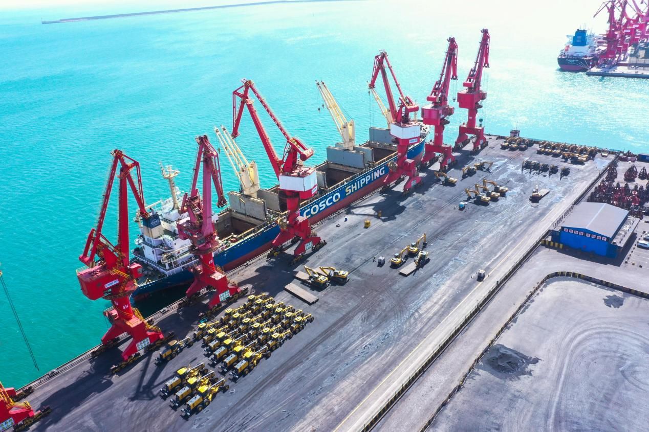 图为徐工设备批量从港口出海