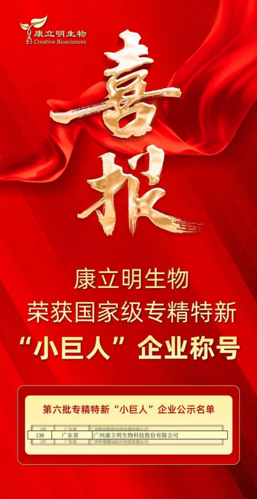 近日,广州康立明生物科技股份有限公司(下称:康立明生物)荣获国家级专精特新“小巨人”企业称号,这一重磅荣誉的获得,不仅充分展现了康立明生物在生物医药体外诊断试剂领域的强大综合实力,成为该行业的佼佼者,更是对公司多年来始终坚持自主创新、精益求精企业精神的肯定和表彰。这一称号的加持,无疑将为康立明生物在未来的发展中注入更强大的动力和信心。
