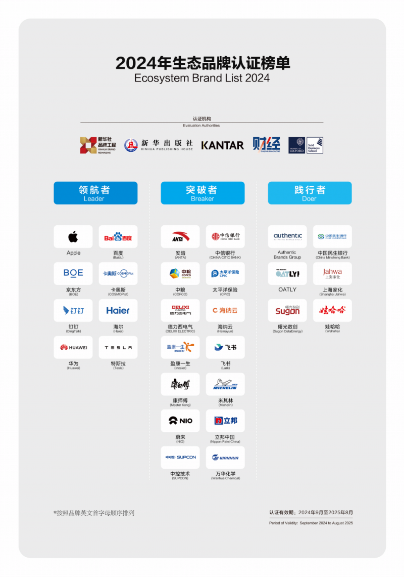 9月19日,由新华社品牌工作办公室、新华出版社、凯度集团、《财经》杂志、牛津大学赛德商学院共同主办的2024(第三届)生态品牌大会在青岛举行。本届大会邀请来自学术界、企业界的重量级嘉宾共聚一堂,以“生态无界,价值无限”为主题,深入探讨“生态品牌—生态企业—生态经济”的时代新范式,共话商业转型和品牌升维的制胜之道。会上发布了2024年生态品牌认证榜单,举行了《生态品牌发展报告(2024)》首发仪式,海尔连续3年处于生态品牌势能图的最高象限,蝉联生态品牌“领航者”。
