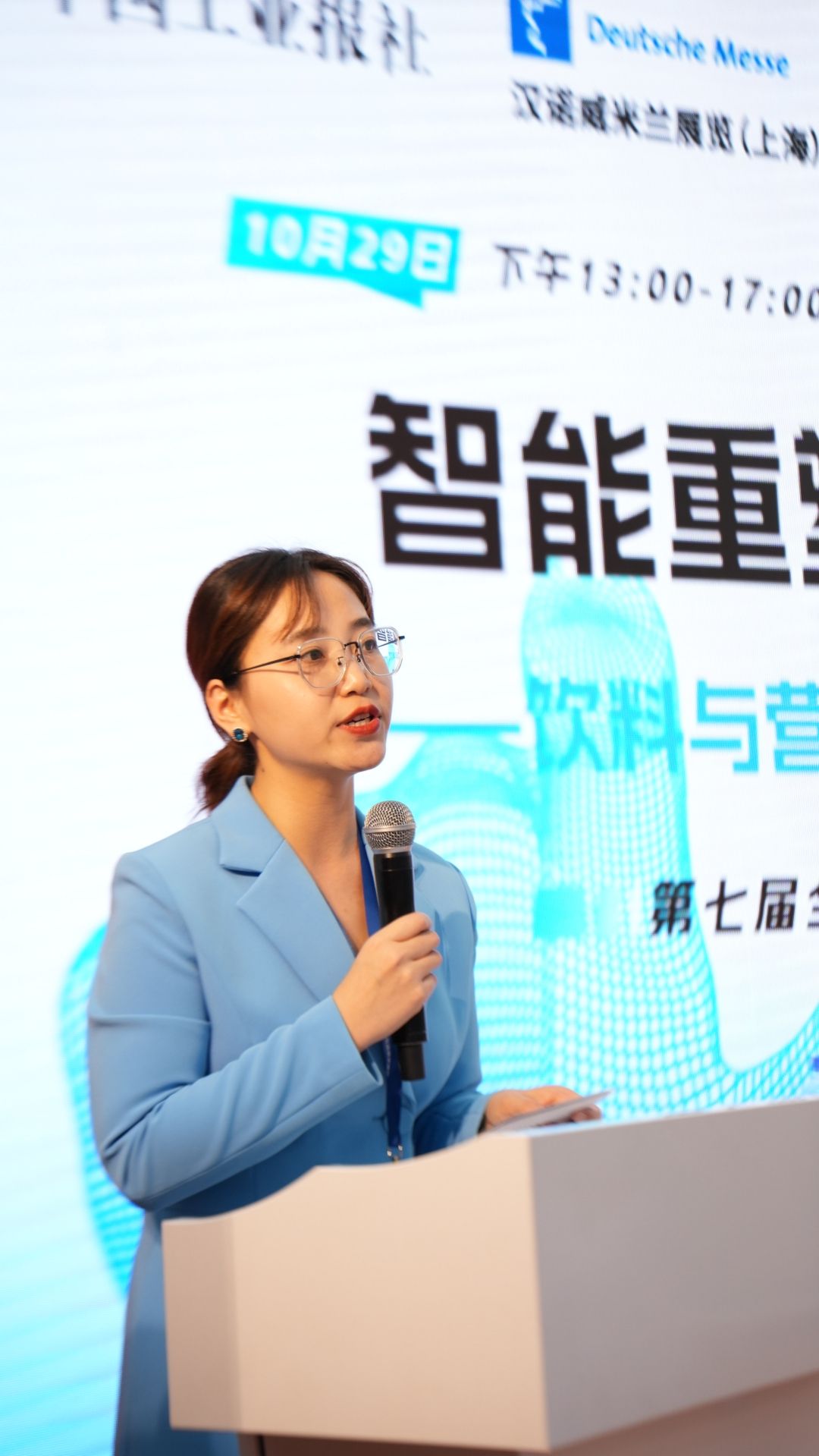 中国工业报社视频直播中心执行主任许莹在致辞中表示:“首先非常感谢各位专家、企业代表和合作伙伴能够莅临本次论坛。在“制造强国”与“健康中国”战略的引领下,食品饮料行业正迎来前所未有的变革机遇。从生产端到消费端,智能化技术正在重塑全产业链:在绿色安全生产方面,我们看到越来越多食品企业引入智能传感器与AI算法,实时监测生产线温湿度、微生物指标,精准控制能耗,实现零污染、零浪费的绿色闭环;在智能化包装领域,可降解材料、智能保鲜包装和数字防伪技术的创新应用,不仅提升了产品安全性,更满足了消费者对健康、环保的需求;而健康生产新赛道上,生物发酵技术、精准营养配方系统等前沿科技,正推动行业向个性化、功能化方向加速迈进。食品饮料行业承载着人民群众对美好生活的期待,更肩负着守护舌尖上的安全与健康中国的使命。中国工业报社愿与汉诺威展览公司及在座各位携手,以媒体的专业视角洞察趋势,以平台的资源整合能力凝聚共识,共同为食品饮料行业的智能化、绿色化、健康化发展注入强劲动力!”