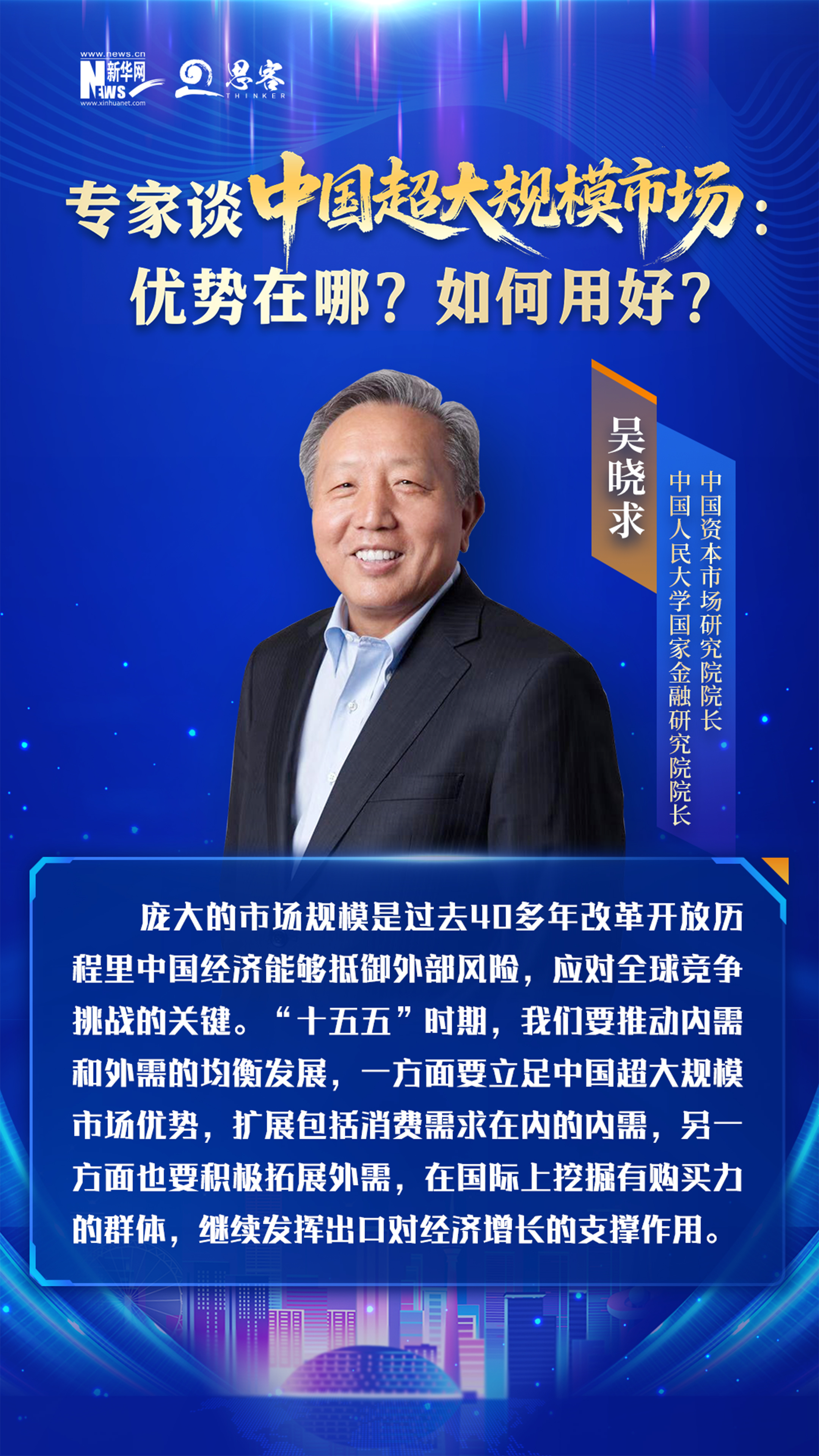 庞大的市场规模是过去40多年改革开放历程里中国经济能够抵御外部风险,应对全球竞争挑战的关键。“十五五”时期,我们要推动内需和外需的均衡发展,一方面要立足中国超大规模市场优势,扩展包括消费需求在内的内需,另一方面也要积极拓展外需,在国际上挖掘有购买力的群体,继续发挥出口对经济增长的支撑作用。