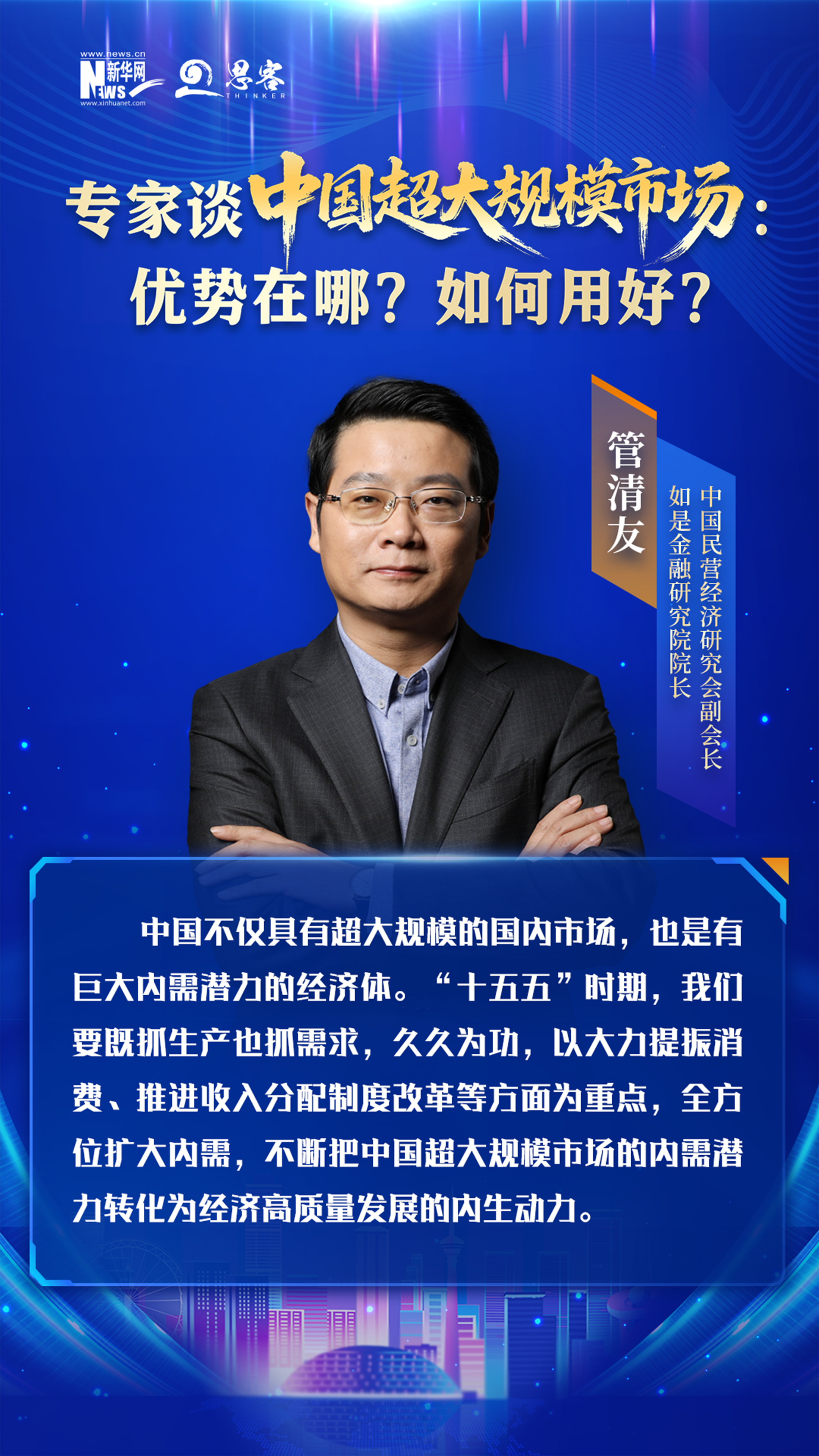 中国不仅具有超大规模的国内市场,也是有巨大内需潜力的经济体。“十五五”时期,我们要既抓生产也抓需求,久久为功,以大力提振消费、推进收入分配制度改革等方面为重点,全方位扩大内需,不断把中国超大规模市场的内需潜力转化为经济高质量发展的内生动力。
