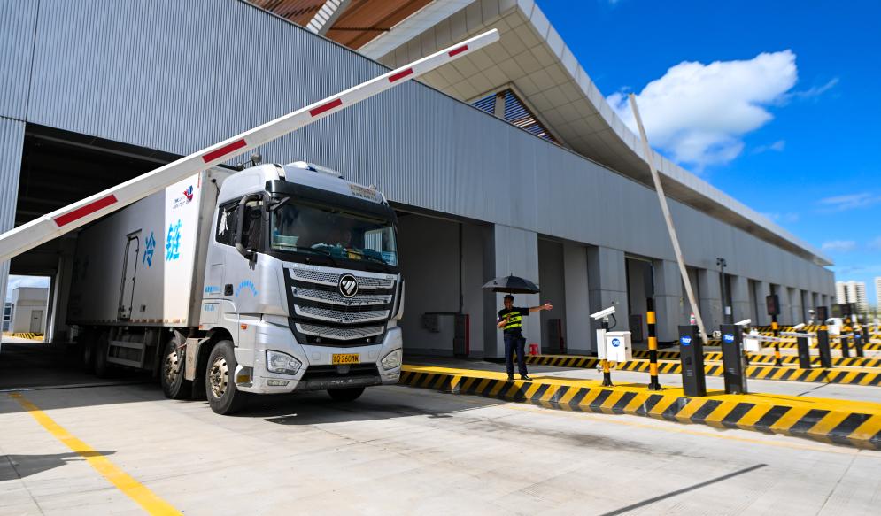 2025年9月17日,离岛货车通过海口新海港和南港“二线口岸”(货运)集中查验场,开往港区。新华社记者杨冠宇摄