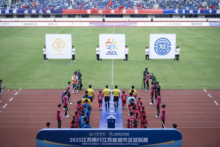 当日,2025年江苏省城市足球联赛第2轮比赛在宿迁市奥体中心体育场举行