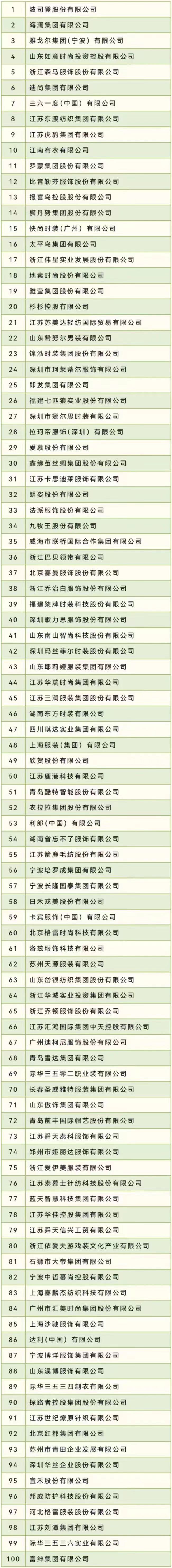 记者从中国服装协会获悉,7月22日,中国服装协会正式发布“2023年中国服装行业百强企业”名单。