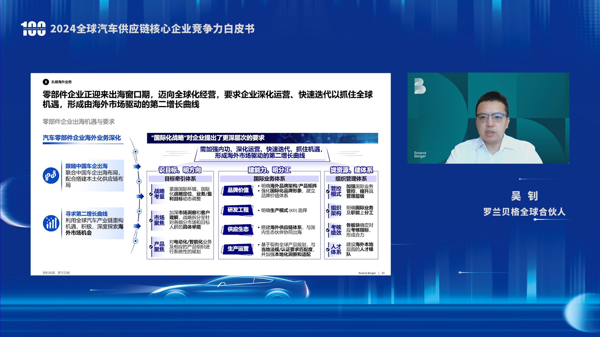 罗兰贝格全球合伙人吴钊表示,零部件企业正迎来出海窗口期,迈向全球化经营,要求企业深化运营、快速迭代以抓住全球机遇,形成由海外市场驱动的第二增长曲线。