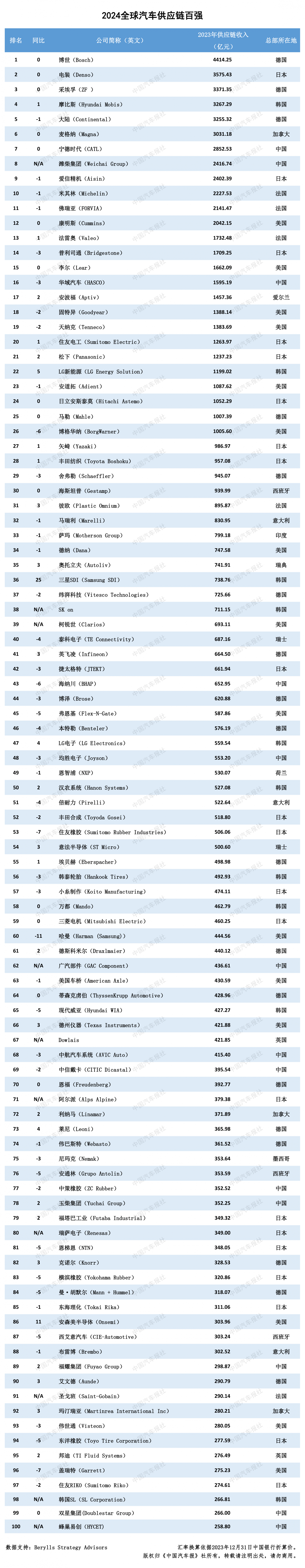 附:“2024中国汽车供应链百强”、“2024全球汽车供应链百强”