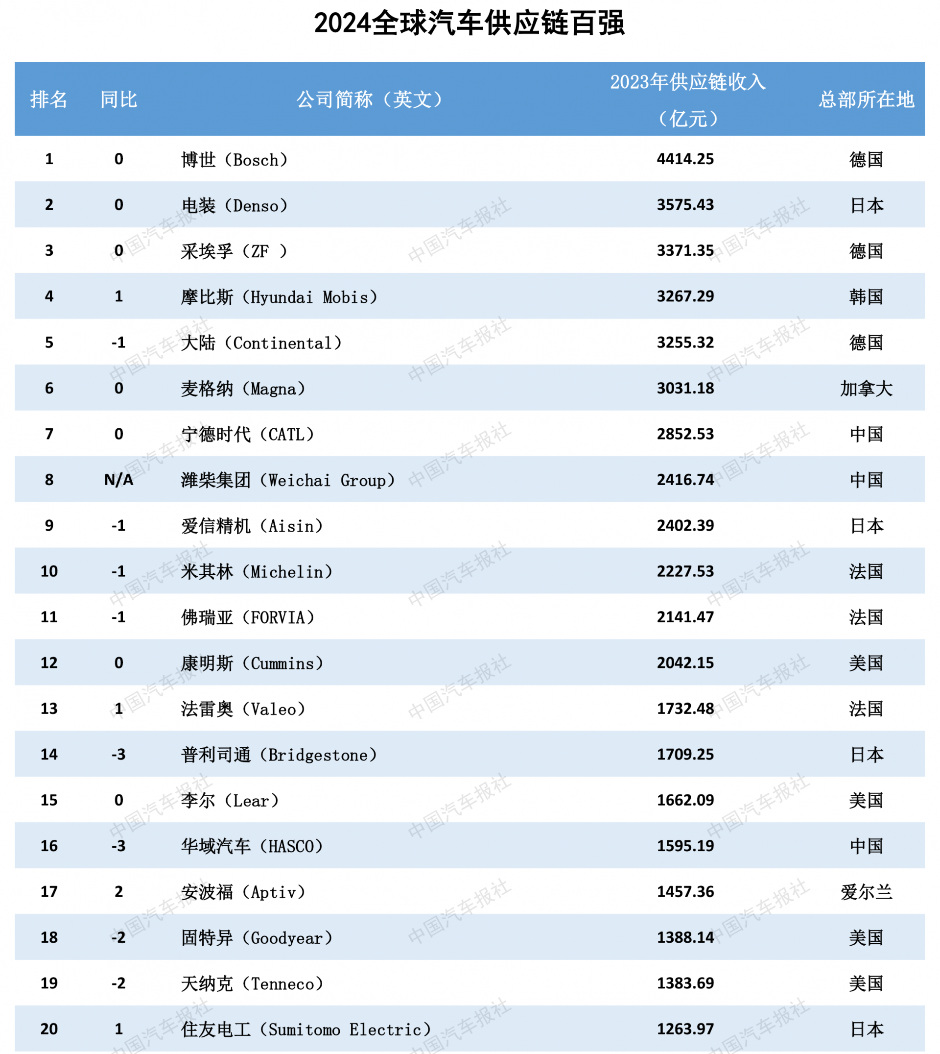 在“全球汽车供应链百强”名单中,多家国际知名汽车零部件供应商在列。其中,博世、电装、采埃孚、摩比斯、大陆等企业凭借技术创新能力和全球布局,继续稳居全球百强前五位。