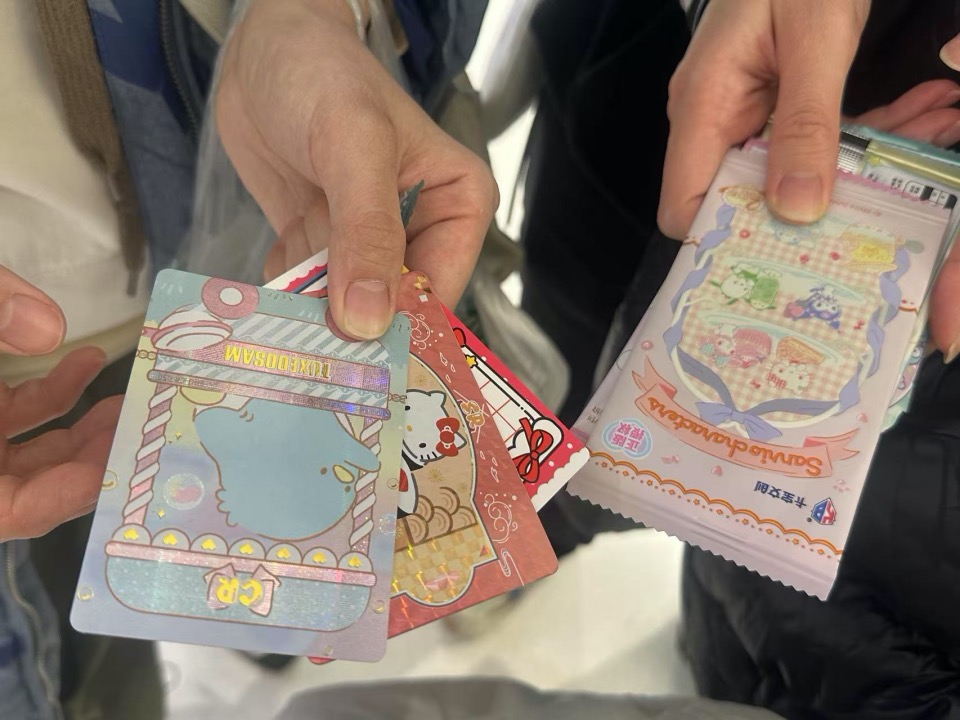 “我听过谷子经济这个词,但只关注‘玉桂狗’,因为喜欢‘玉桂狗’,所以才抽这个系列的卡牌盲盒。”其中一名00后女生这样提及自己喜欢的IP,并表示刚刚买卡牌花了30元,手里还有几包没有拆开,很期待后边的盲盒惊喜。