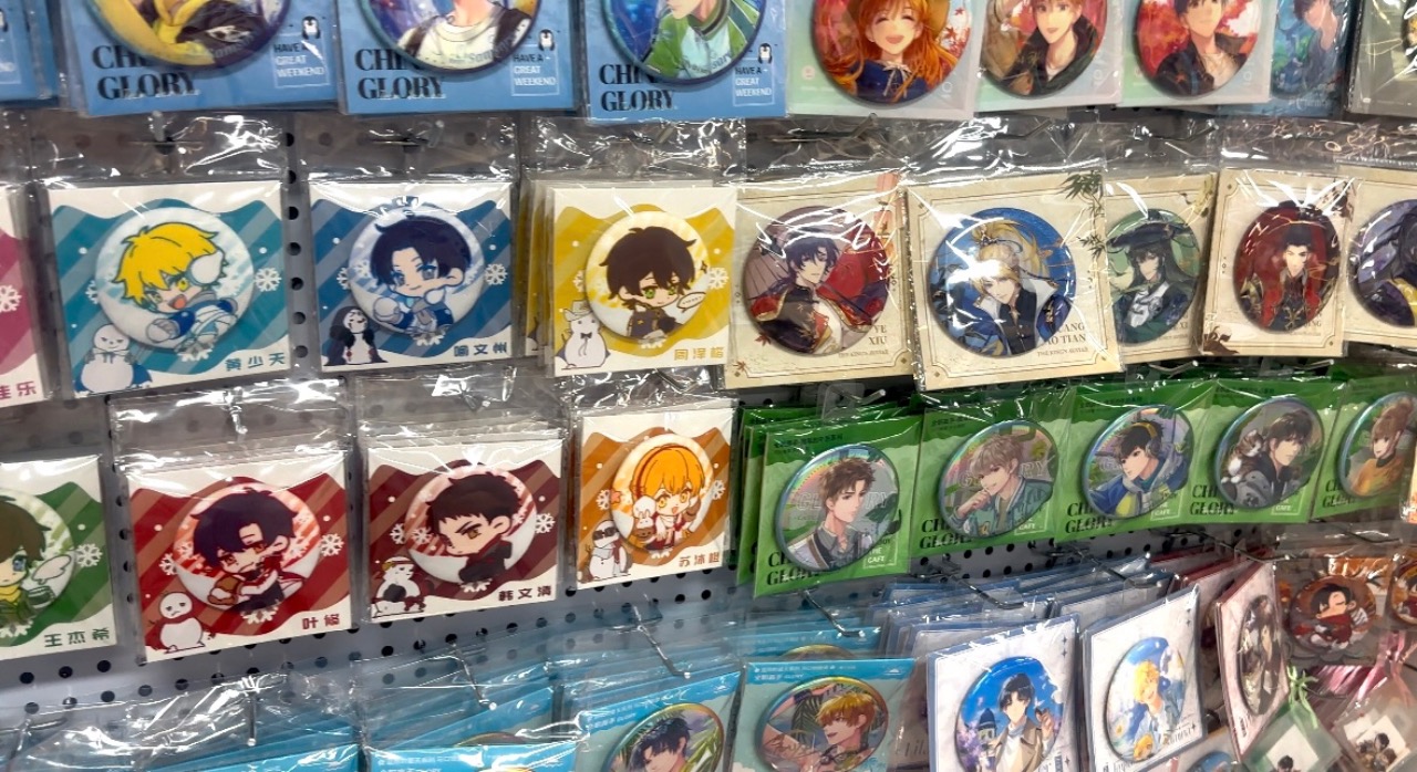 走进店内,仿佛踏入了一个二次元的奇妙天地,随处可见各种色彩斑斓、风格各异的二次元人物IP海报,从热门经典的热血少年动漫角色,到清新可爱的少女漫主角形象,再到充满想象力的奇幻魔法系二次元人物,无一不在向路过的人们展示着二次元世界的独特魅力。店内店员正忙着上架新产品,有位正在认真挑选徽章的年轻人,开心地说:“在这里能找到很多独特的周边,感觉特别有成就。”