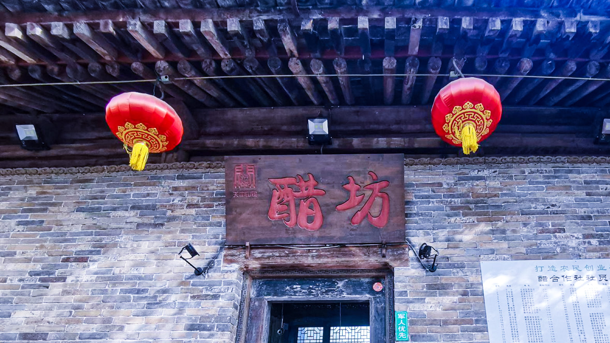 门正中央悬挂着“醋坊”牌匾,几只泥封的大缸整齐地排列在门的两侧,仿佛在守护着这份独特的美味。寻香而来的游客们在门外排起了长龙,空手而归的游客与他们擦肩而过,脸上流露出期待与好奇。记者也加入了这支“寻香队”,缓缓走进醋坊,准备一探究竟。