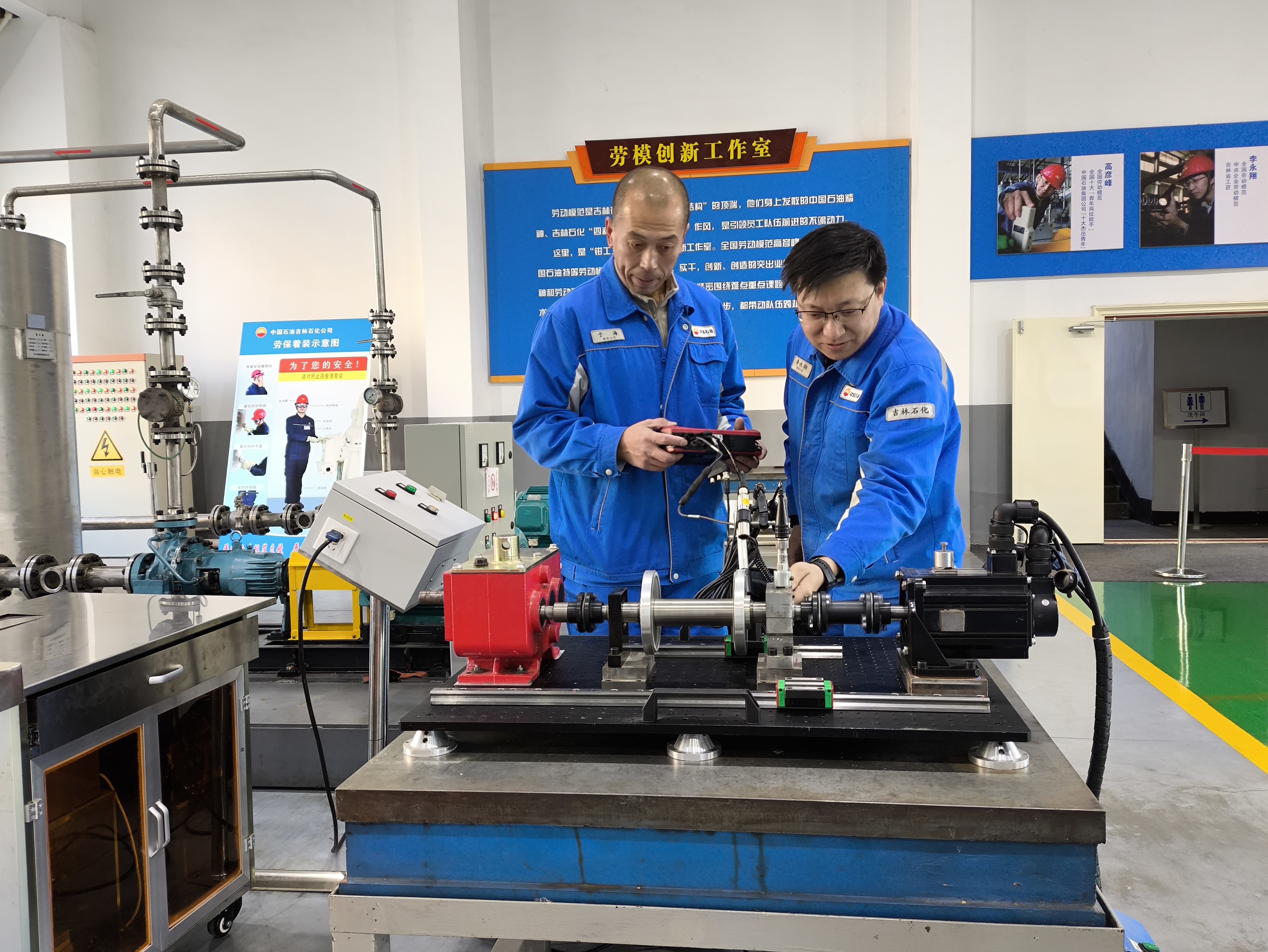 吉林石化建修公司工程技术室副主任赵文斌指着面前长度不足1.5米,浑身插满仪表探头,科技感十足的设备介绍道:"模拟机利用机械振动频谱分析技术,通过模拟出设备不同故障类型振动特点,与实际设备的监测数据进行比对分析,即可有效解决机械振动故障精准分析及判断的难题,让设备自己‘说话’‘对症下药’、靶向维修,最大限度减少或杜绝漏检误判问题,将停车抢修风险消灭在萌芽状态,为装置的长周期稳定运行提供了有力技术保障。"