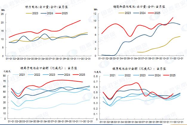 图1、动力电池、储能电池及其他电池出口量及金额走势(资料来源:动力电池创新联盟,海关,SMM,国泰君安期货研究,公开资料整理)