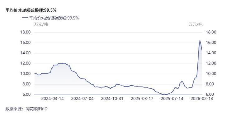 财信证券分析显示,近期碳酸锂价格价强势,2026年供需有望维持紧平衡。随着需求端的持续增长以及近期国内碳酸锂供给端的扰动,近三个月碳酸锂价格出现了较大的涨幅,从2025年11月25日的9.24万元/吨涨至2026年2月25日的16.44万元/吨,涨幅达到了77.92%。随着春节假期结束,三月份开始国内电池厂商的排产开始逐步增长,锂电产业链景气度会逐步回升,碳酸锂的需求也会随之增长。