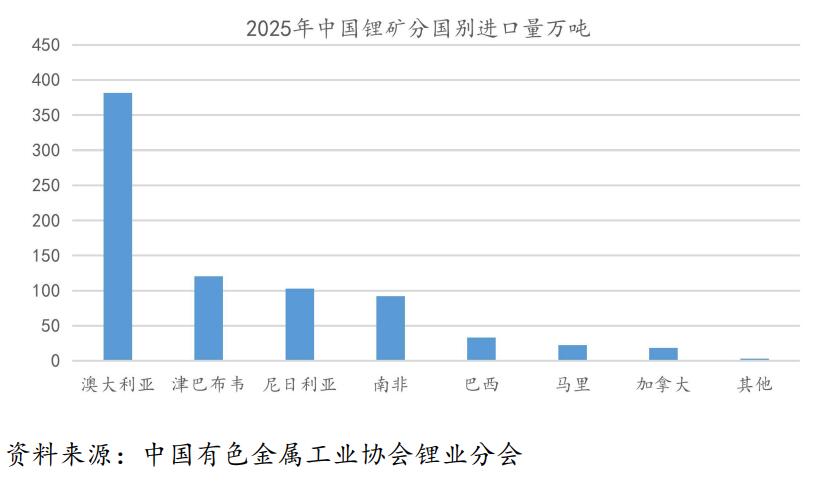 据USGS数据,2025年津巴布韦锂资源产量约2.8万金属吨,占全球总产量的8%。中国海关数据显示,2025年我国从津巴布韦进口锂矿120万吨,占全年进口总量的19%。根据中国有色金属工业协会锂业分会披露的数据,2025年我国进口锂精矿约775.1万吨,同比增长约39.4%,其中从津巴布韦进口120.4万吨,占进口总量的15.5%,津巴布韦是我国第二大锂矿进口来源国。