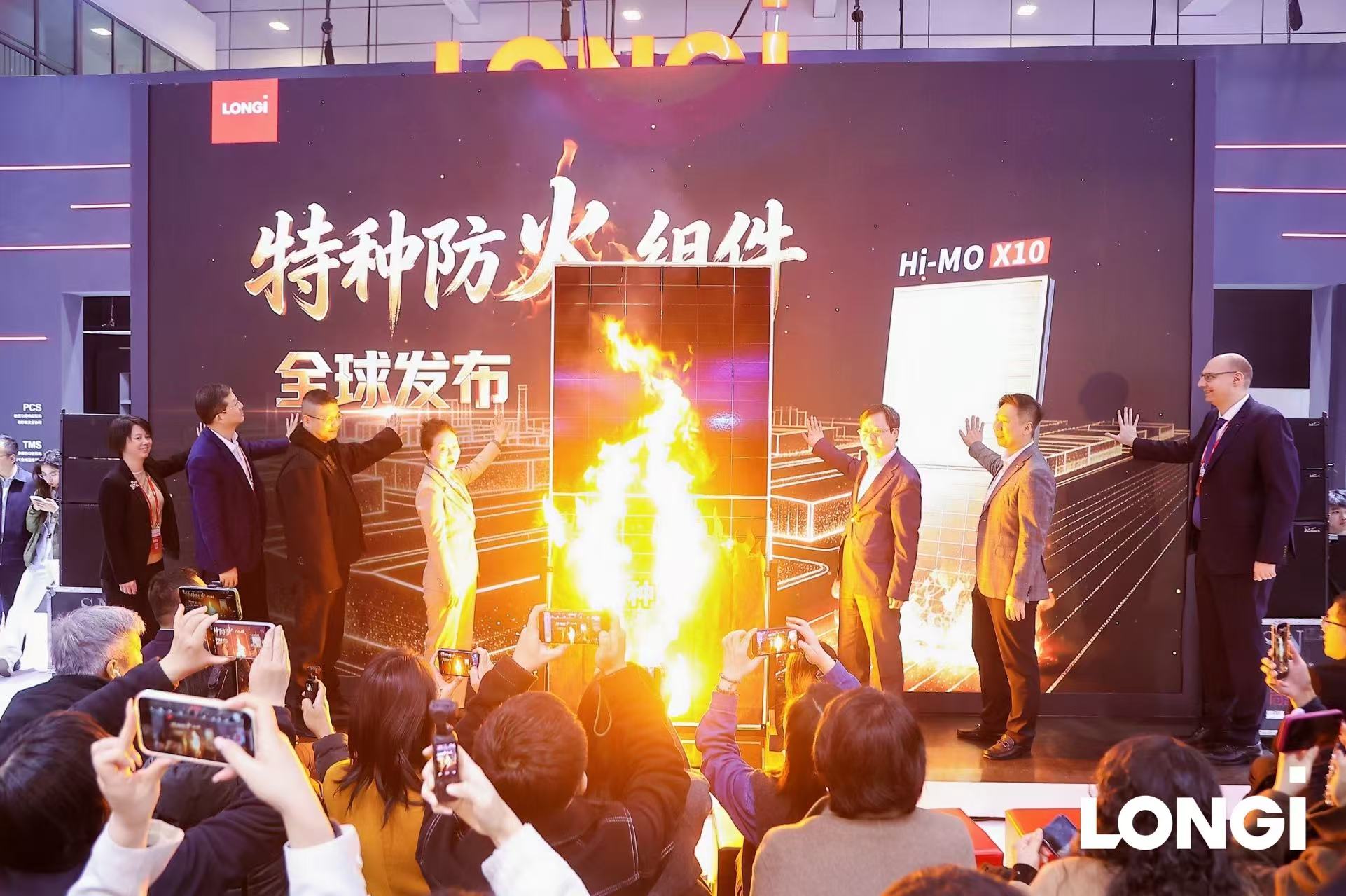 展会首日,全球首款“特种防火组件”发布。中国工业报记者获悉,这是隆基绿能推出的一款Hi-MOX10特种防火组件。该组件的核心突破,将从根源掐灭安全隐患,为电站构建起不可逾越的安全防线。