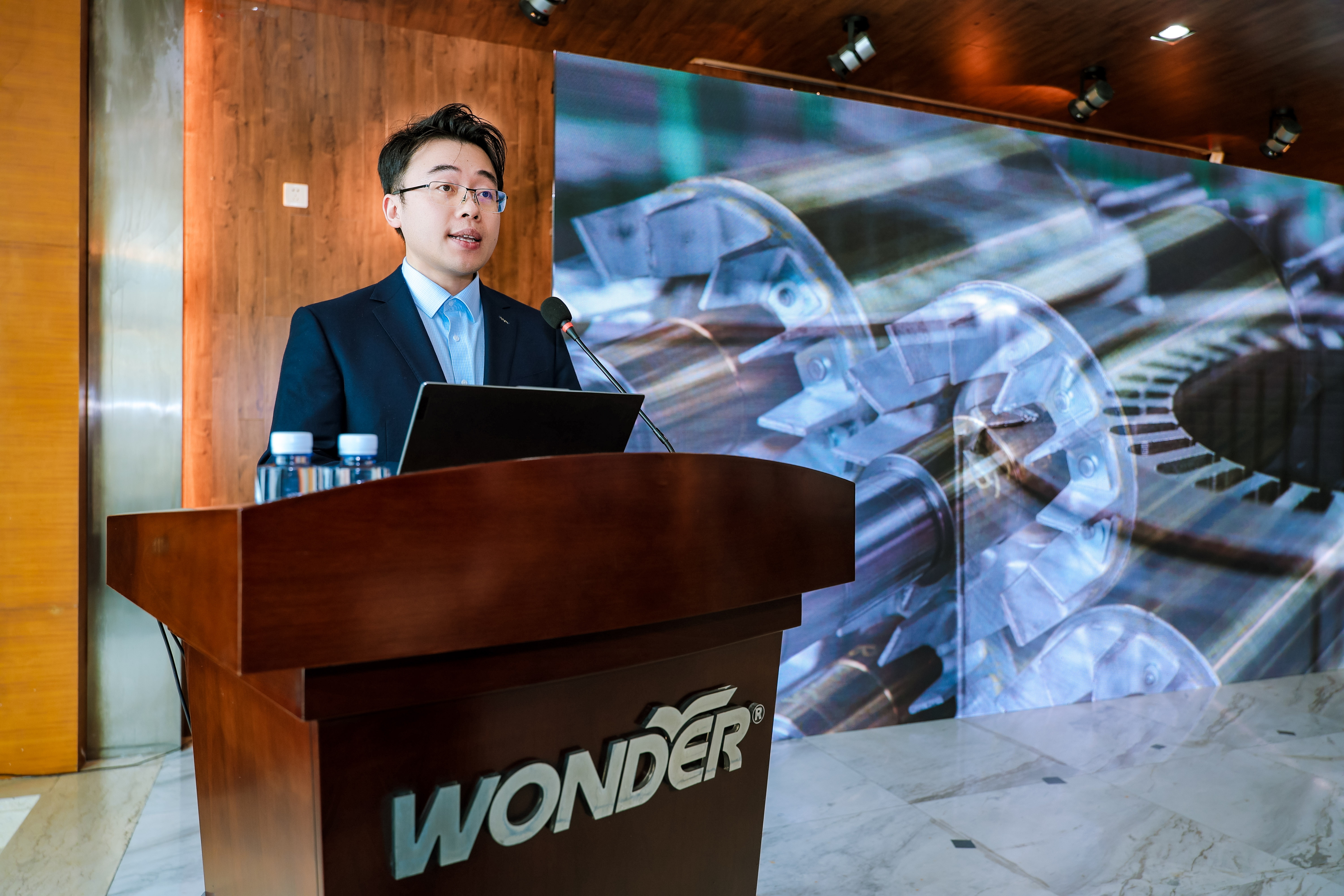 “定制是万德的底色,智能是发展引擎,融合是我们的未来!”3月22日,在2026年贯彻落实全国两会精神中工智库沙龙上,福州万德电气有限公司国际市场总监余佳龙,以《智能化高端化升级,推动高效电机产业融合新发展》为题,分享了万德电气在高效电机产业智能化、定制化浪潮下的融合发展新路径,展现了中国电机企业面向“十五五”的战略思考与实践探索。