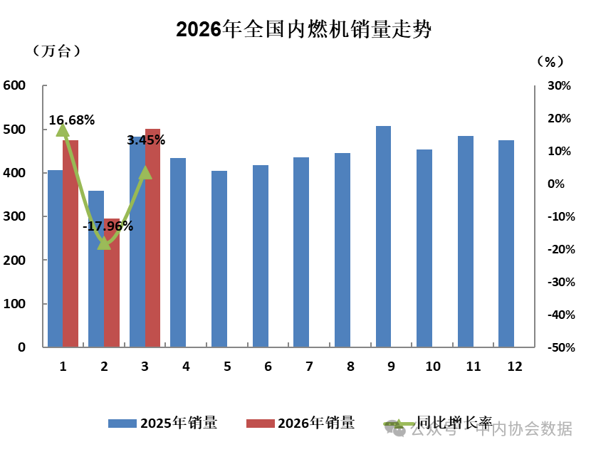 据中国内燃机工业协会最新数据,2026年3月内燃机行业整机销量环比大幅回升、同比增长,一季度销量与上年同期基本持平略有增长。