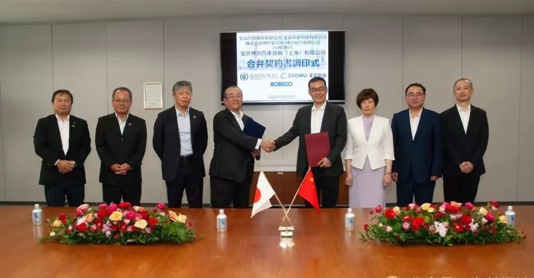 8月8日,宝山钢铁股份有限公司(简称“宝钢股份”)、宝武铝业科技有限公司(简称“宝武铝业”)与日本株式会社神户制钢所(简称“神户制钢”)三方正式同意成立宝钢神钢汽车铝板(上海)有限公司(暂定名),并在日本东京签订了合资合同