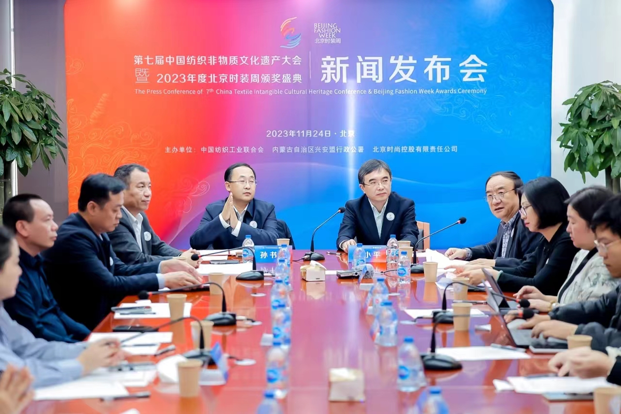 11月24日,第七届中国纺织非物质文化遗产大会暨2023年度北京时装周颁奖盛典新闻发布会在北京召开。主办方在发布会上宣布,大会将于12月21-23日在北京召开,以“中国式现代化进程中纺织非遗高质量发展”为主题,由中国纺织工业联合会、内蒙古自治区兴安盟行政公署、北京时尚控股有限责任公司联合主办,中国纺织工业联合会非遗办公室、北京时装周有限责任公司共同承办,由内蒙古自治区兴安盟文化旅游体育局、内蒙古自治区兴安盟科右中旗蒙古族刺绣协会共同协办。