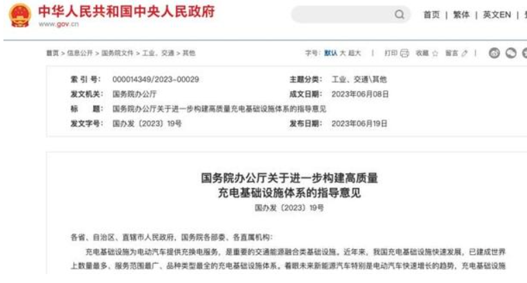 国务院办公厅印发《关于进一步构建高质量充电基础设施体系的指导意见》